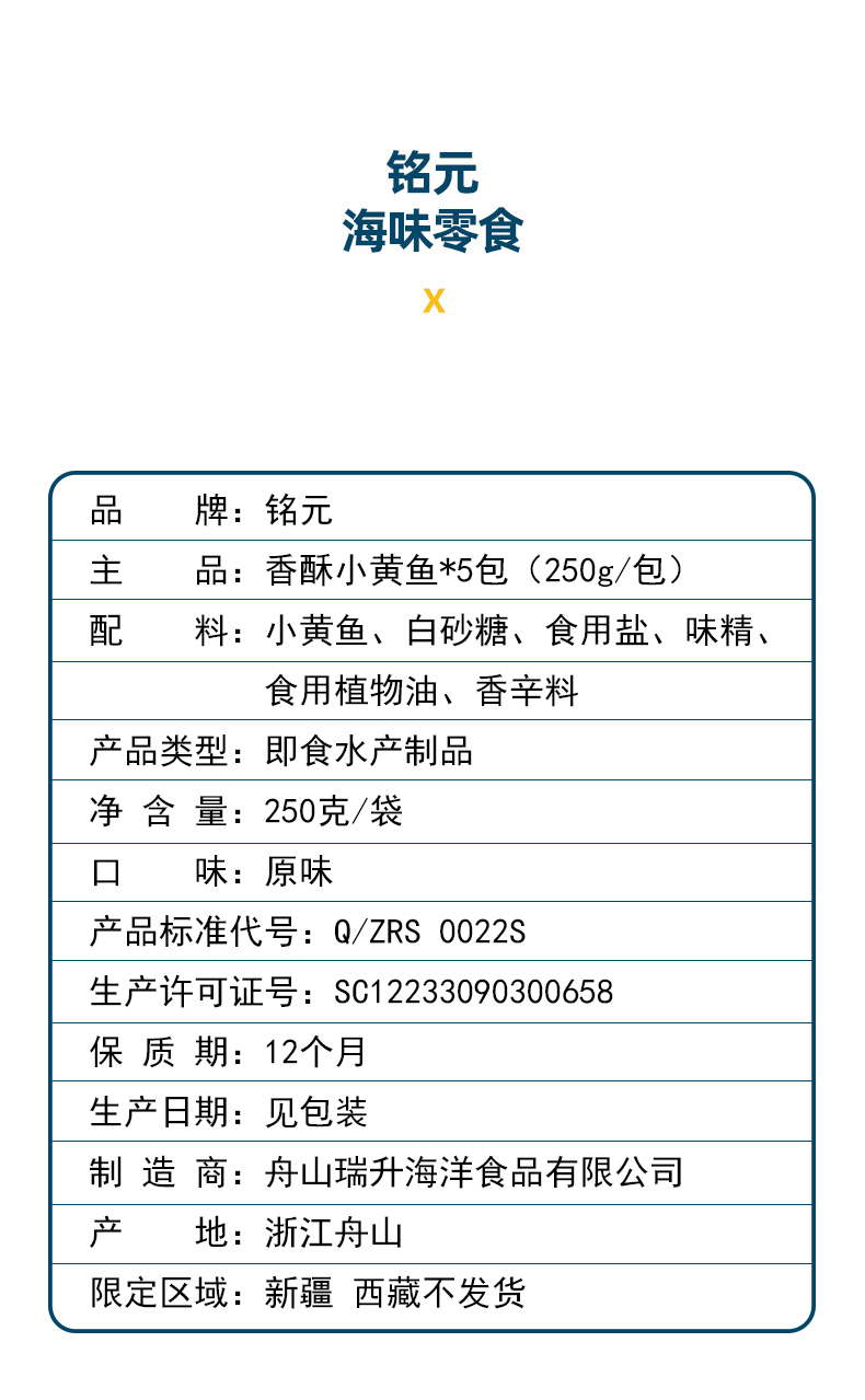 舟山香酥小黄鱼(250g/包*5包)