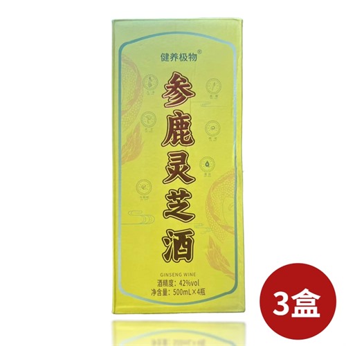 主商品:参鹿灵芝酒(500ML/瓶*4瓶/盒)*3盒