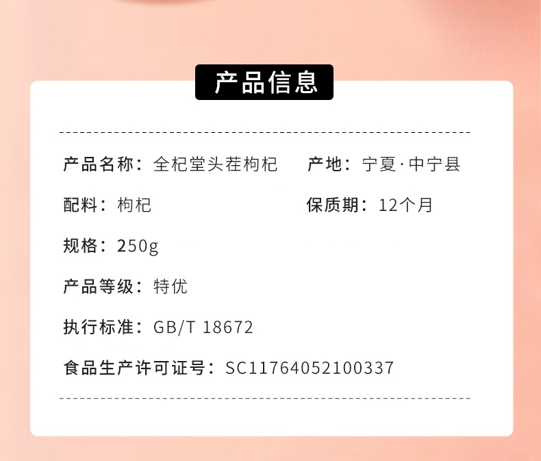 商品名称 全杞堂宁夏头茬枸杞6罐超值组