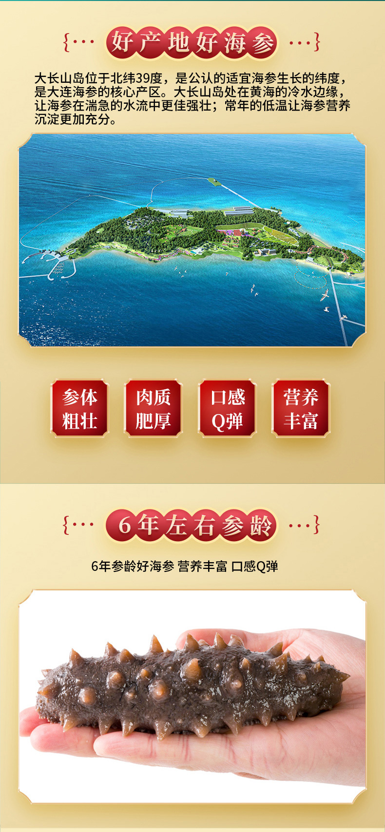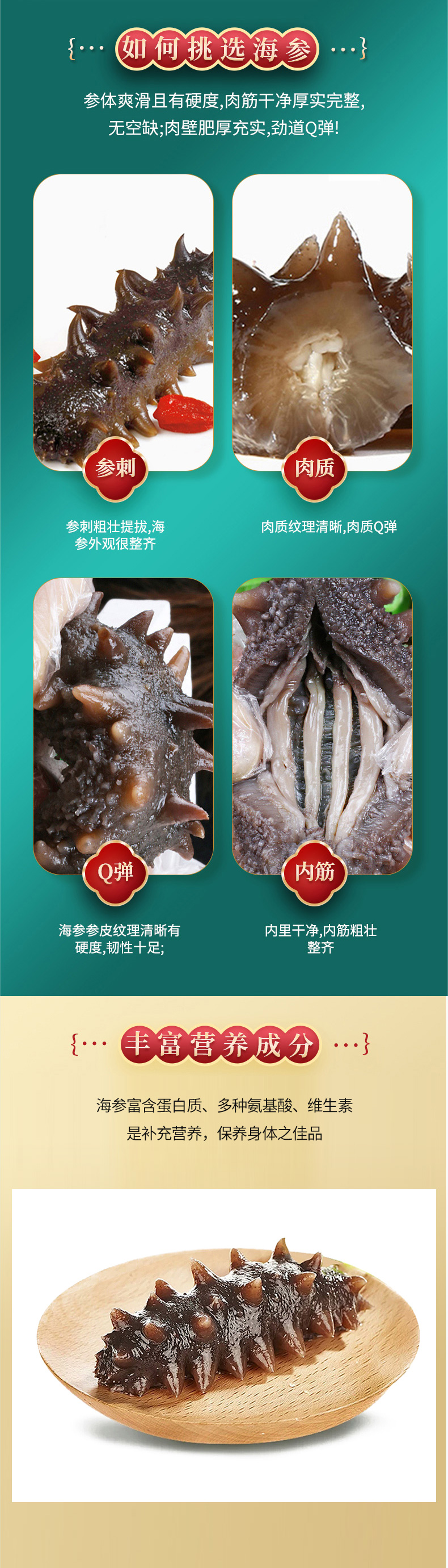 组合:北纬黑金即食海参500克(10-12头)/袋*3袋