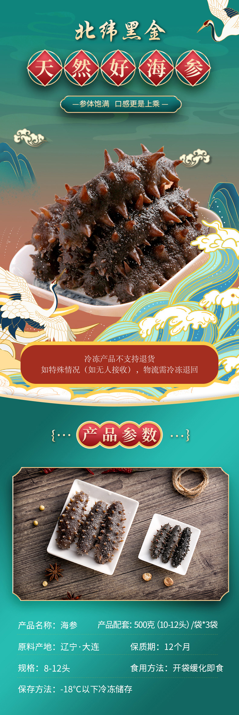 北纬黑金即食海参(500克(10-12头)*3袋)