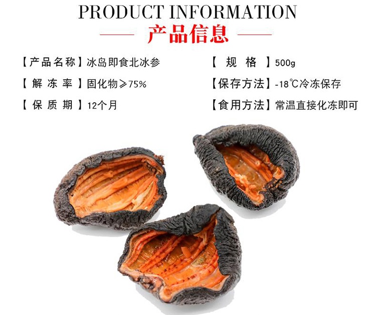 北纬黑金即食海参(500克(10-12头)*3袋)
