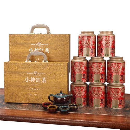 韵杯小种爆杀组(特级小种红茶礼盒200g*2盒+特级小种红茶铁罐100g*8罐+一壶四杯茶具*1套")