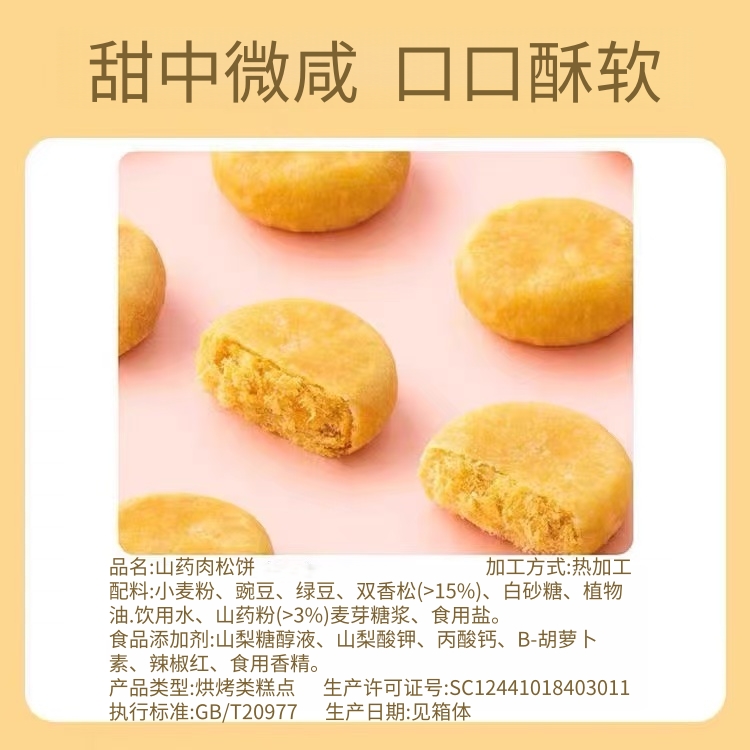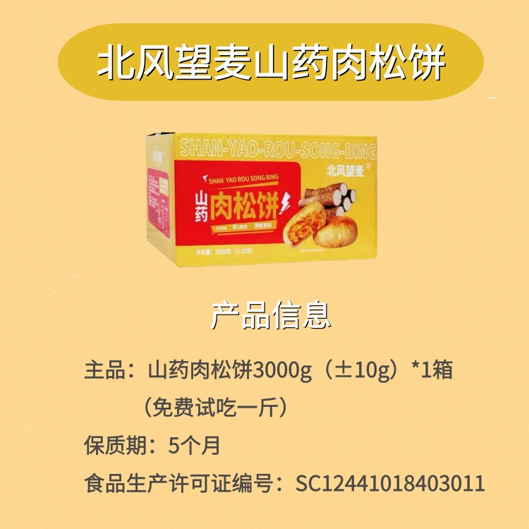 主品:山药肉松饼3000g(±10g)*1箱(免费试吃一斤)