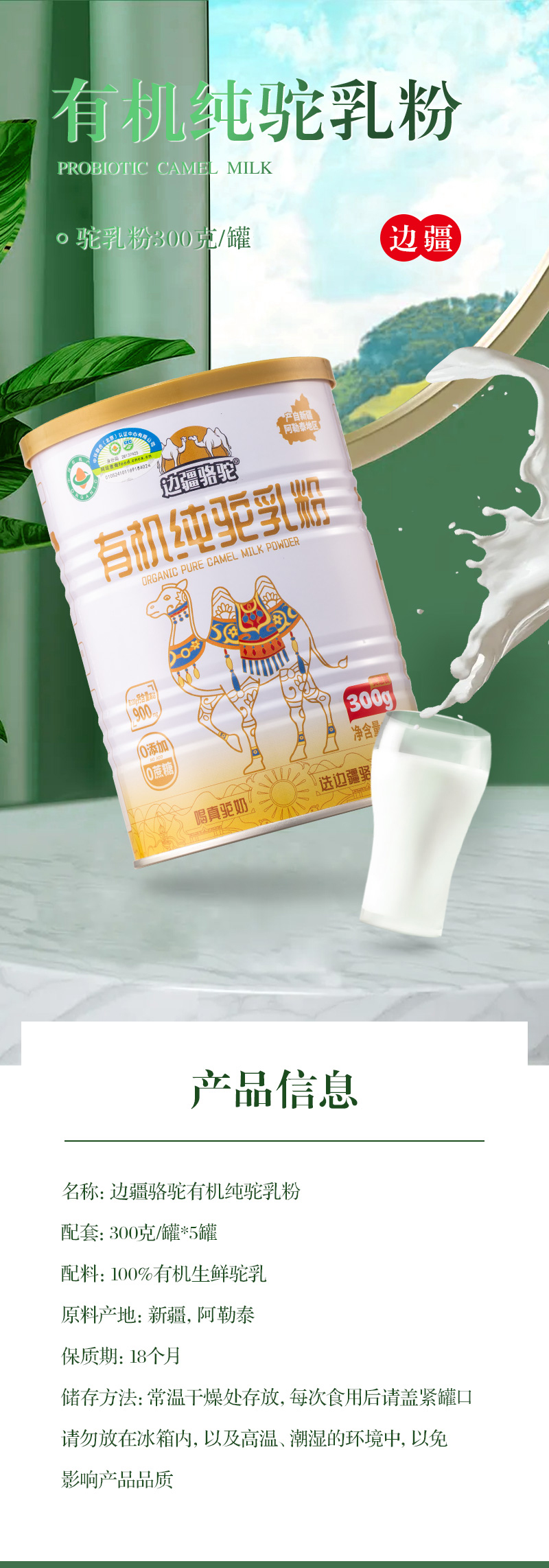 边疆骆驼有机纯驼乳粉(300克*5罐 )
