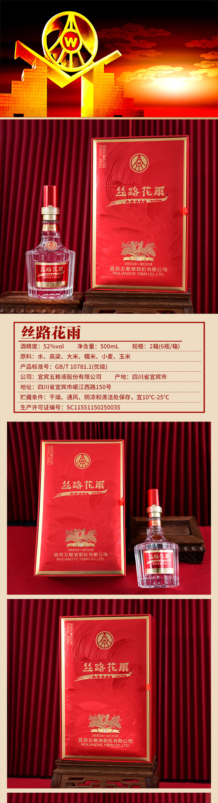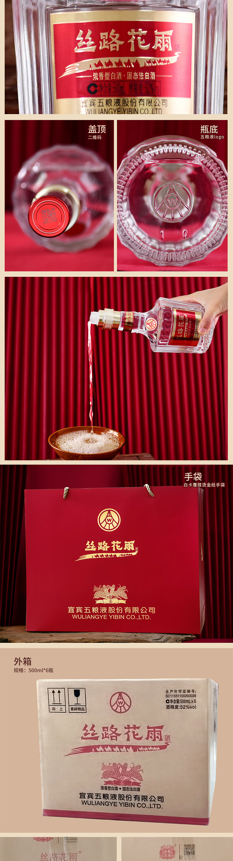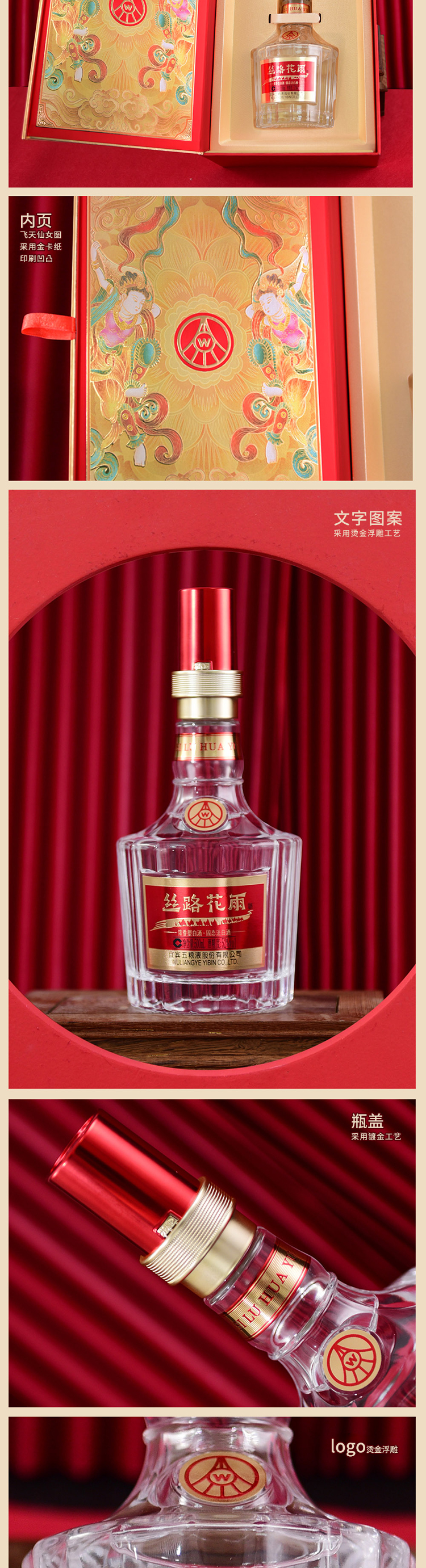 主商品:五粮液股份有限公司出品丝路花雨/飞天神女系列(辉煌241)*2箱(6瓶/箱)