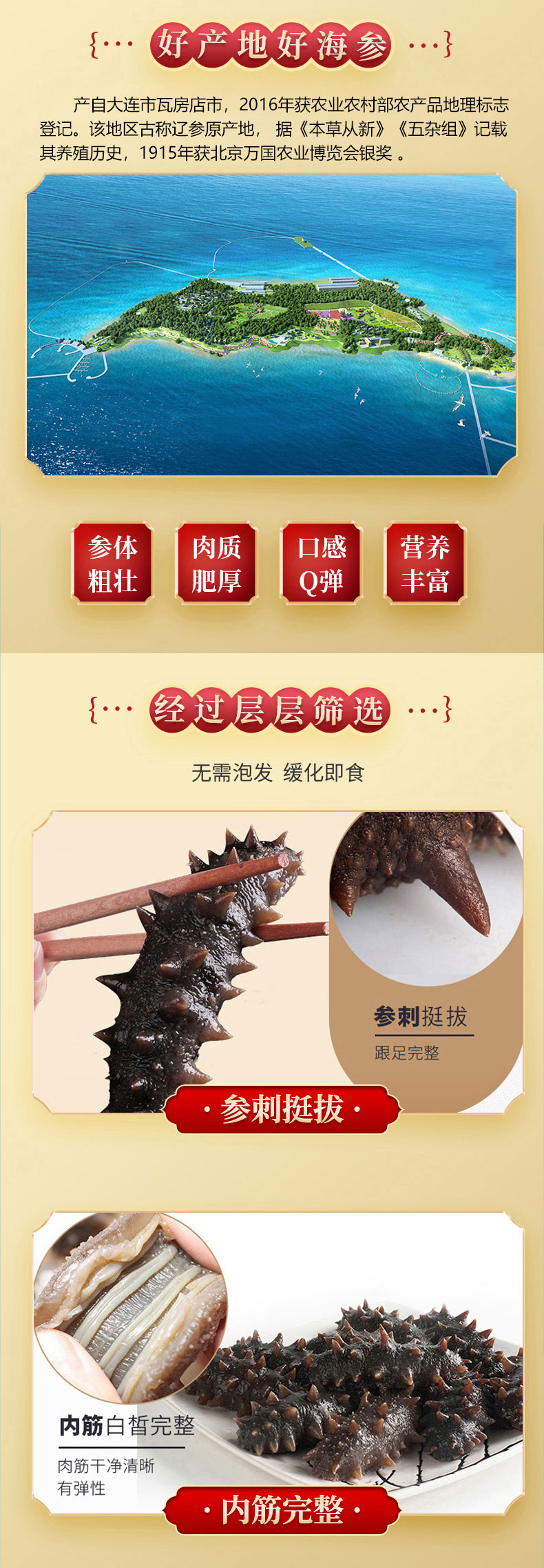 大连瓦房店地标深海特大海参量贩装(500克/袋(6-8头)×6袋)