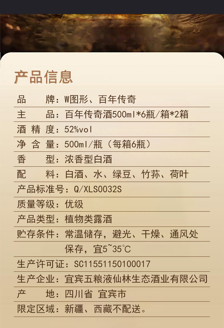 主品:百年传奇酒500ml*6瓶/箱*2箱