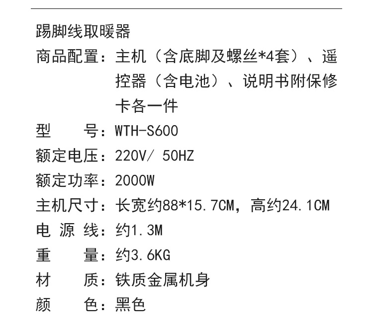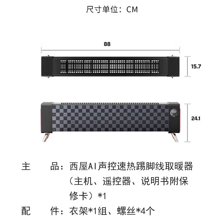 主品:西屋AI声控速热踢脚线取暖器(主机、遥控器、说明书附保修卡)*1