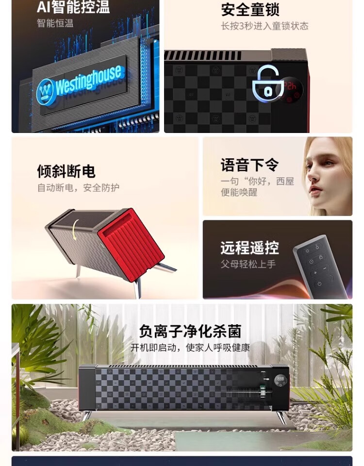 "商品名称:西屋AI声控速热踢脚线取暖器