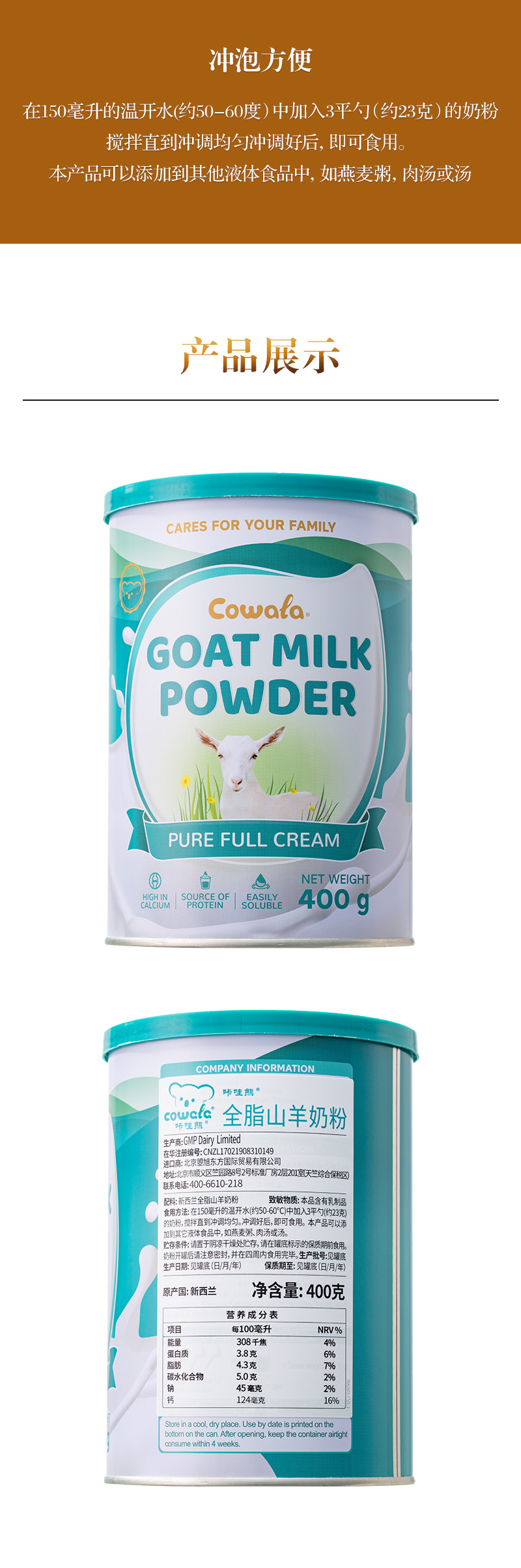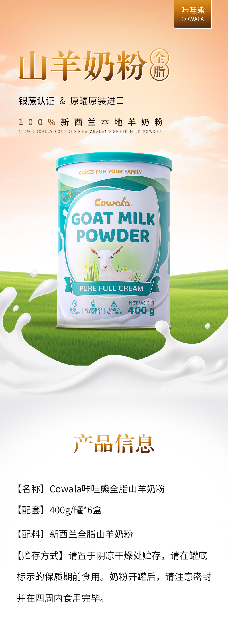 Cowala咔哇熊全脂山羊奶粉(400g*6罐)