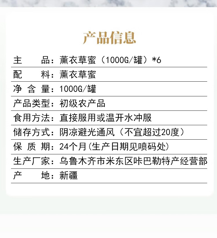 疆蜜原精选薰衣草蜂蜜(1000g*6罐)
