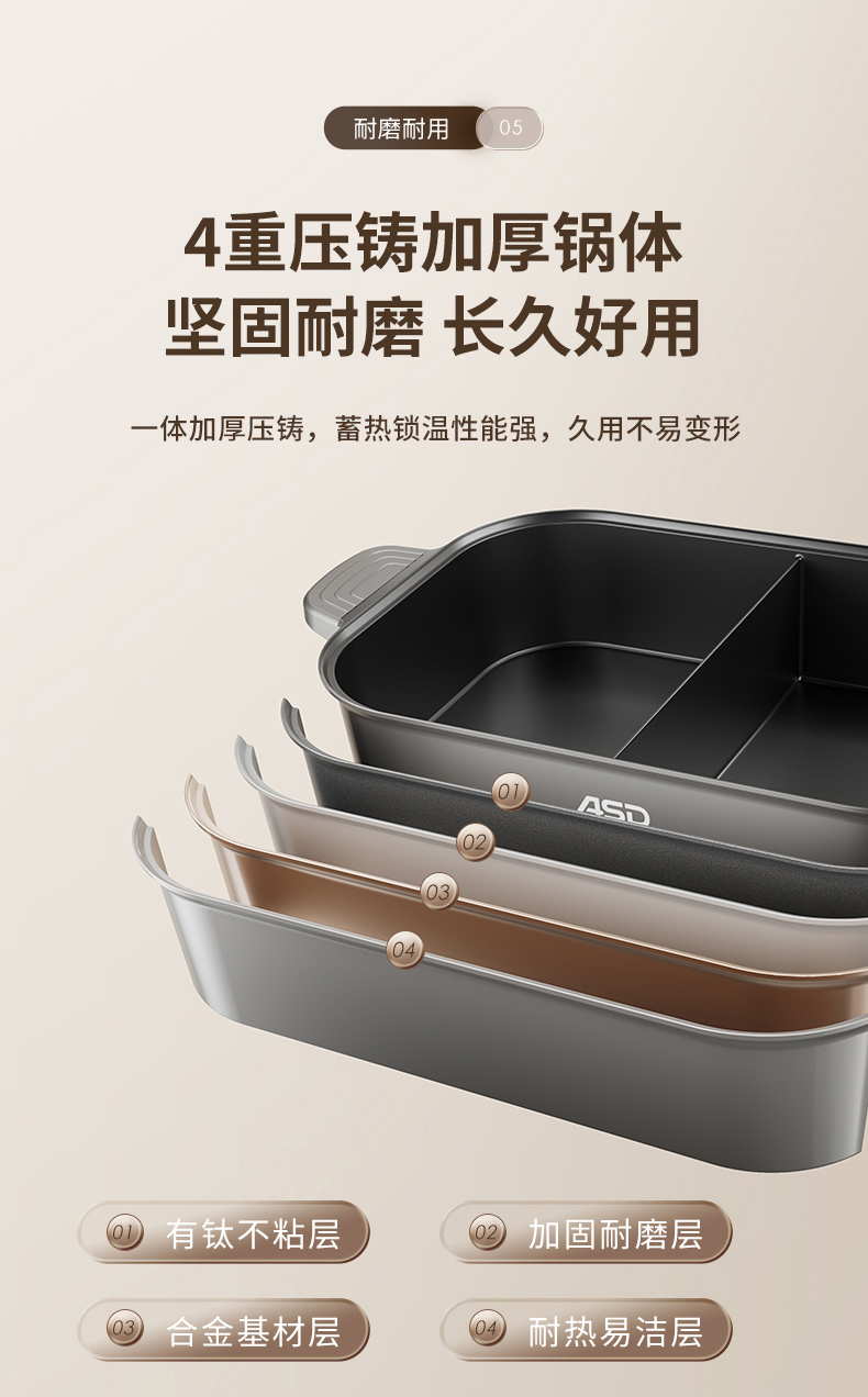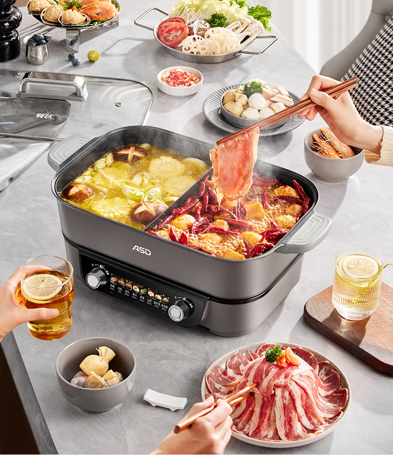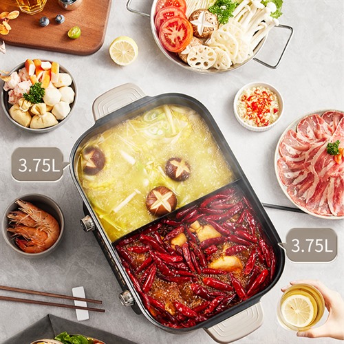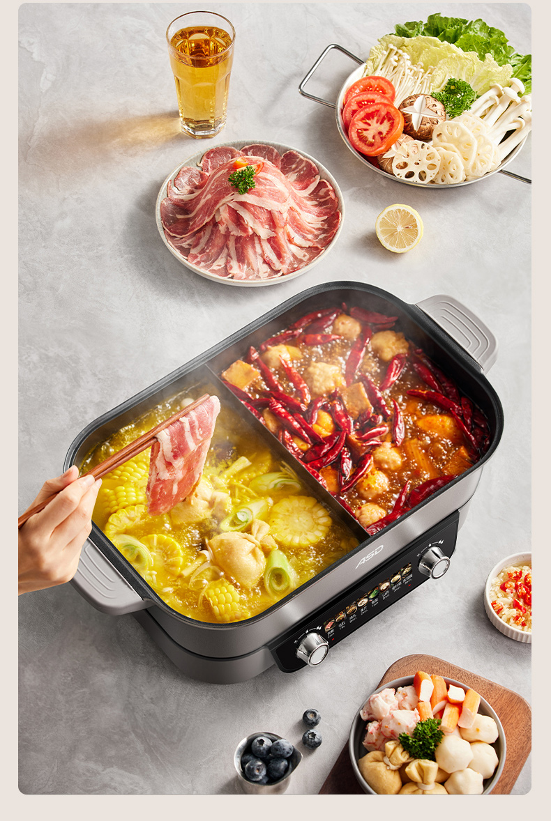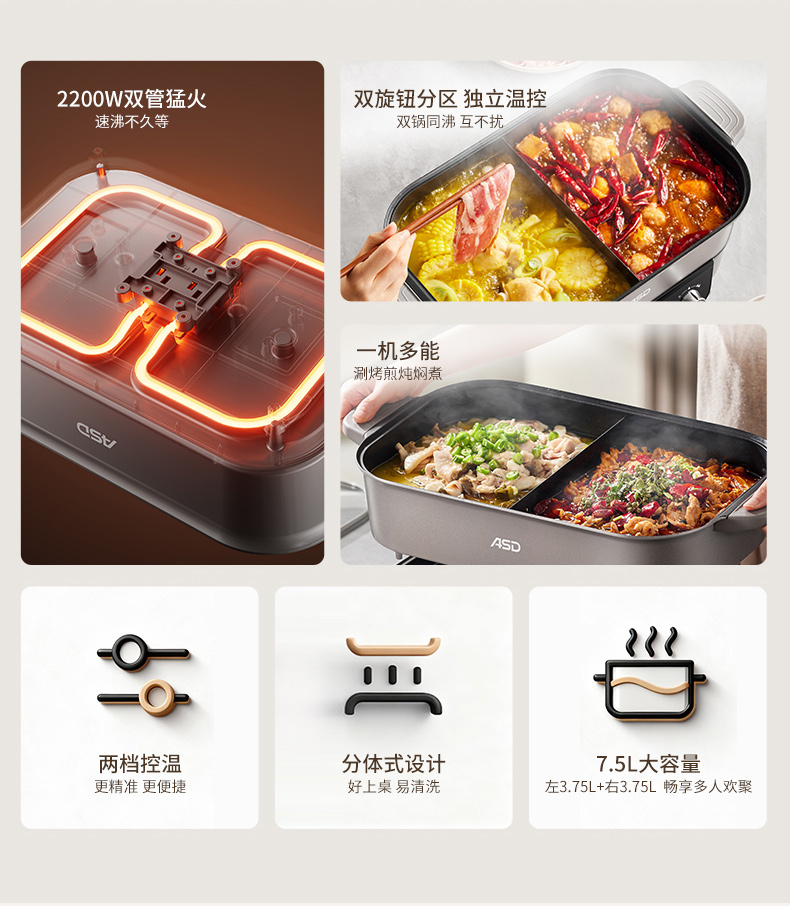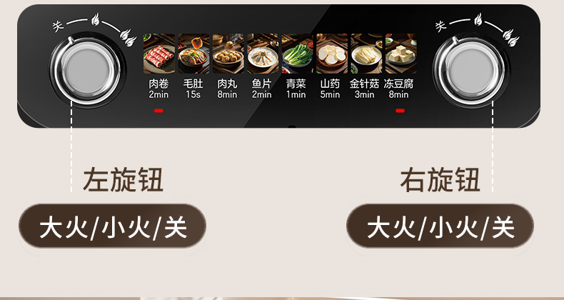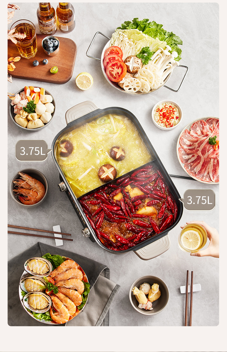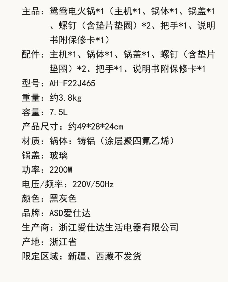 鸳鸯电火锅*1(主机*1、锅体*1、锅盖*1、螺钉(含垫片垫圈)*2、把手*1、说明书附保修卡*1)