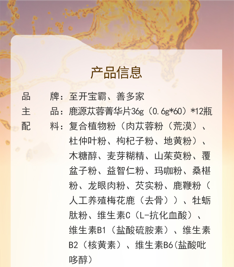 主品:鹿源苁蓉菁华片36g(0.6g*60)*12瓶