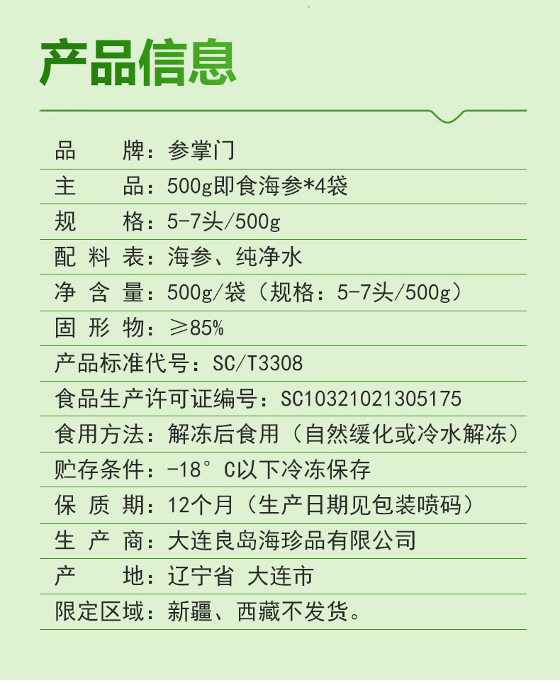 主品:500g即食海参*4袋(规格:5-7头/500g)