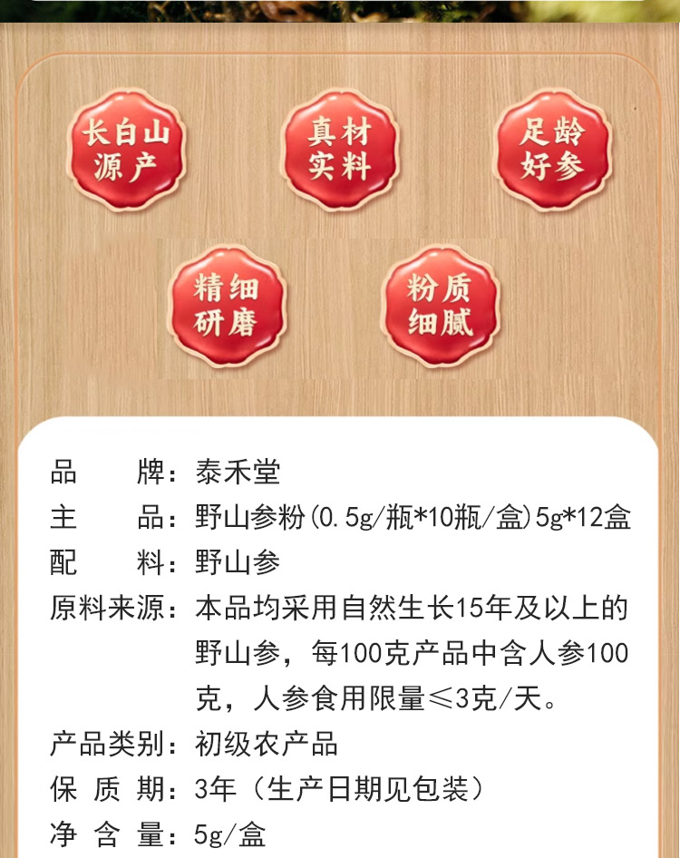 主品:野山参粉(0.5g/瓶*10瓶/盒)5g*12盒