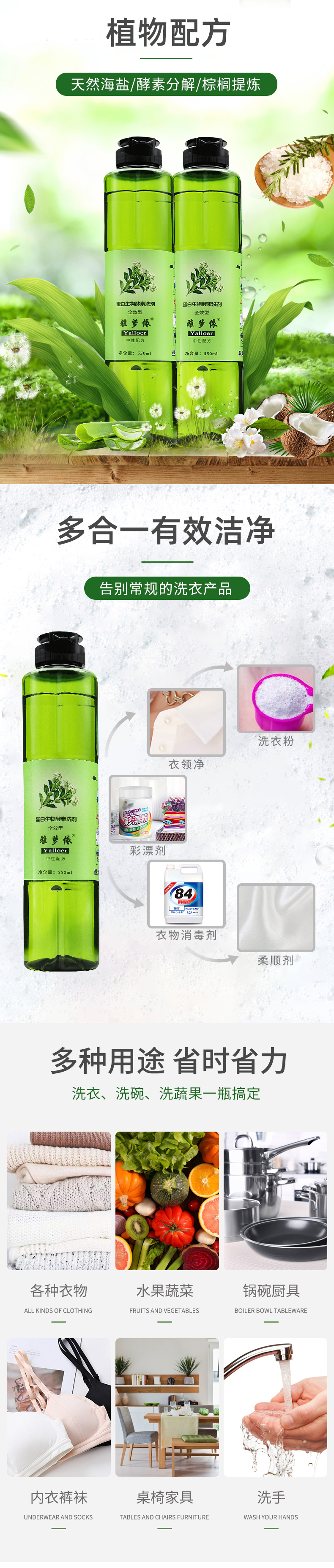 洗衣液*10桶,蛋白生物酵素洗剂*2瓶