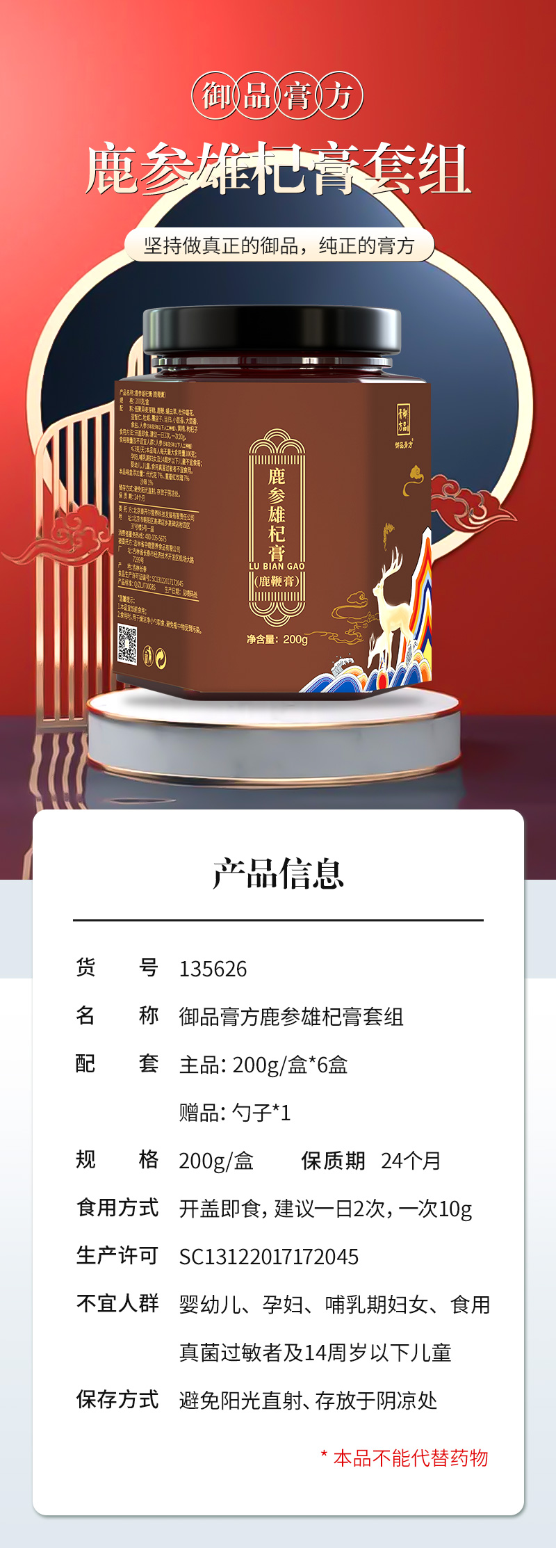 御品膏方鹿参雄杞膏套组(200g*6盒)