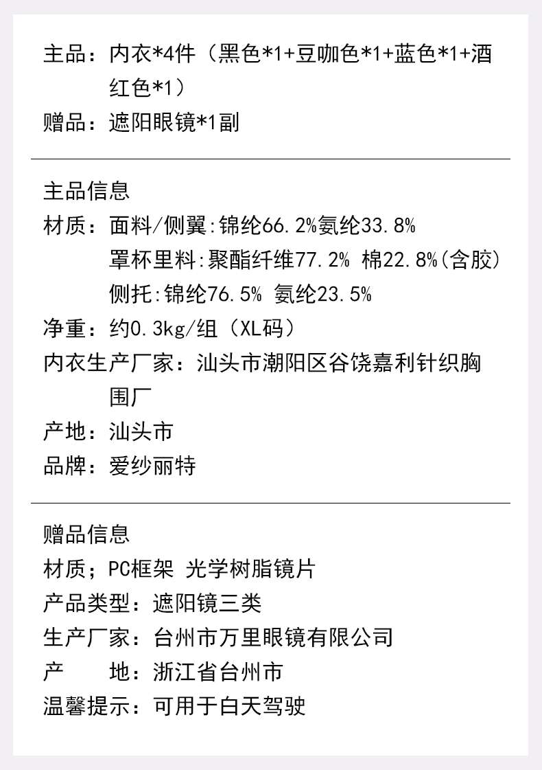 | 文胸款式 | U型杯和立挺杯 |